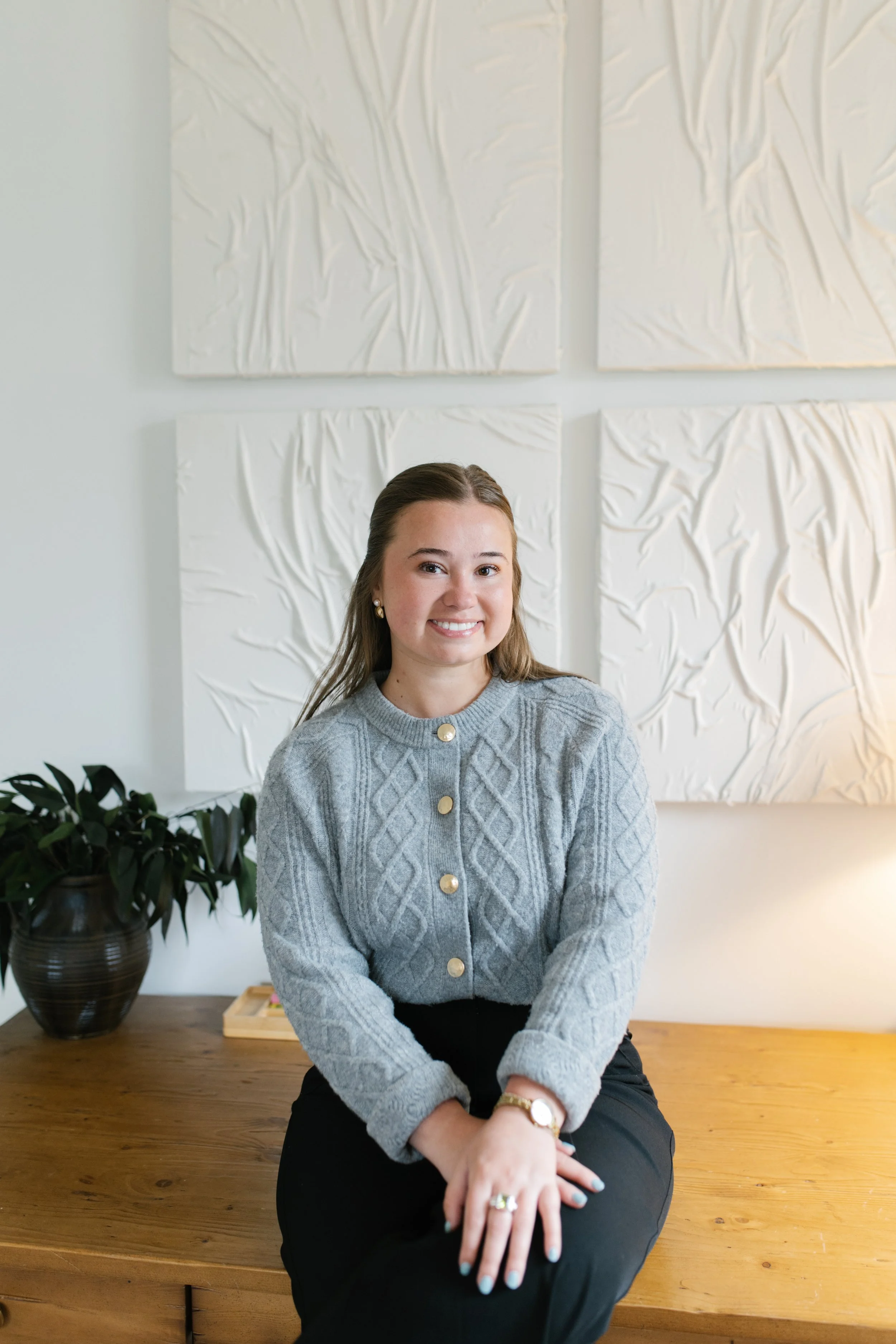 To my clients, I am a Licensed Clinical Social Worker (LCSW), validator, empathizer, and a place of warmth and non-judgement. To my friends and family, I am Carly: hype woman, “the fun aunt,” coffee enthusiast, and lover of charcuterie boards, flower arrangements, and SEC football. When I am not at the office, you can find me enjoying community with my loved ones in my cozy, cottage home, or walking around downtown Raleigh with my Bernedoodle, Oakley.